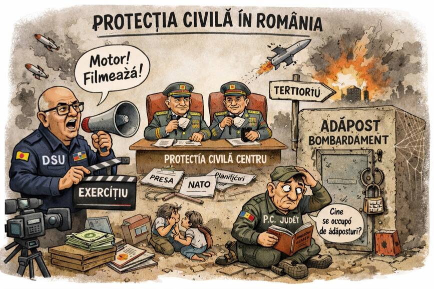 Protecția civilă în caz de atac aerian nu se măsoară în exerciții și nici în sirene testate. Se măsoară în minute. În cele două până la cinci minute după o alertă reală, când omul trebuie să știe exact unde se adăpostește. România are sirene. Are RO-ALERT. Are structuri și comunicate. Ceea ce nu are, în mod vizibil și verificabil, este o infrastructură transparentă de adăpostire și o cultură reală de reacție. Întrebarea rămâne simplă: unde intră concret cetățeanul din Iași, Galați sau București în primele 120 de secunde? Dacă răspunsul nu este clar, atunci vorbim despre coregrafie, nu despre capacitate operațională.